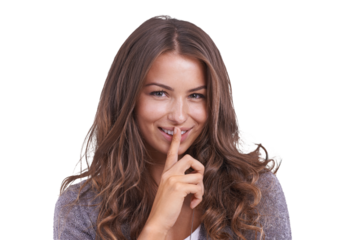 woman making 'shh' silence gesture, isolated PNG transparent background