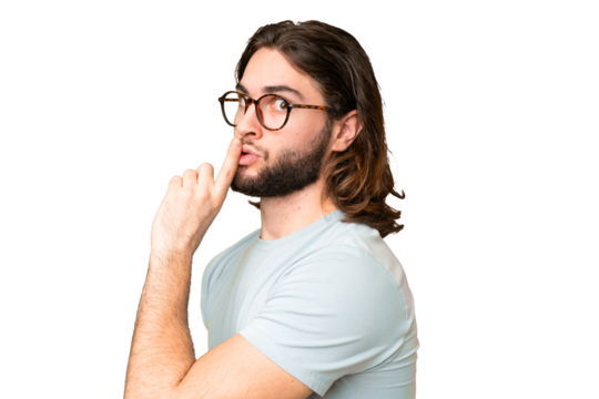 Brazilian man over isolated chroma key background covering mouth with hands