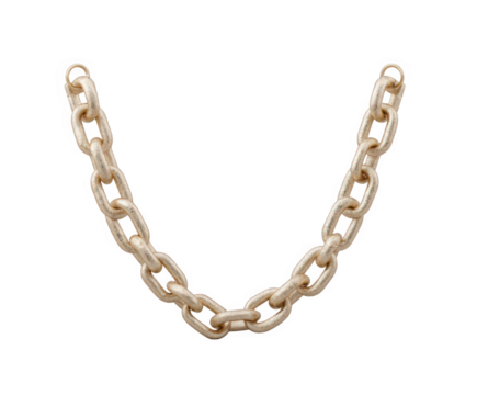 A metallic chain with large links, forming a gentle curve, isolated on a transparent background, symbolizing connection, strength, and security
