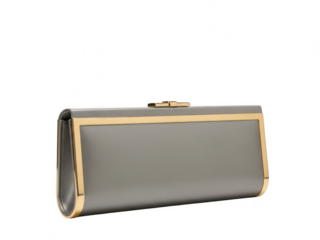 Elegant gray clutch with gold trim and secure closure isolated on transparent background