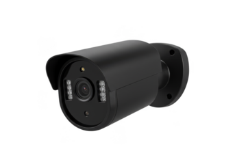 Security Camera on Transparent Background with Cylindrical Housing in Gray Scale, PNG