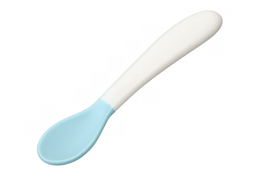 Blue plastic baby feeding spoon on transparent background