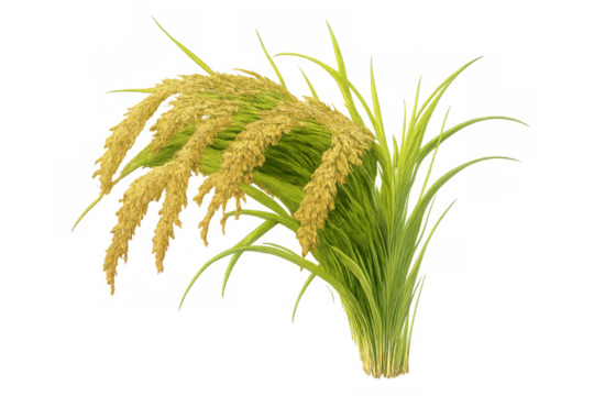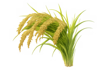 Golden rice stalks of paddy plant with ripening grains depicting harvest and food security concept, transparent background