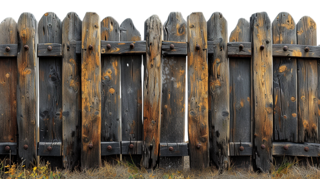 Destroyed wooden fence cutout. Realistic broken wooden fence