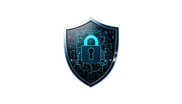 A stylized, 3D lock icon with a green checkmark and a yellow shield, signifying security and verification.  The lock is a vibrant blue, and the shield is a bright yellow