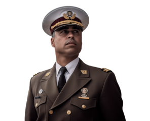 Dark blue police or pilot peaked cap in three views for professional authority and uniform set