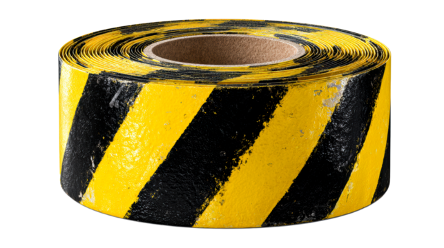 Roll of Hazardous Yellow and Black Striped Warning Tape, cut out transparent