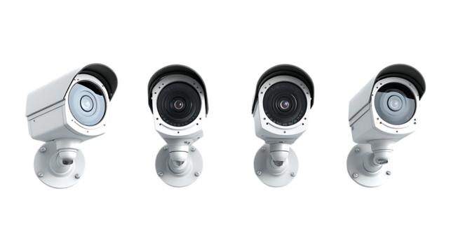 Pack Collection Security Camera System Four Models Enhanced Surveillance Solutions set against transparent background