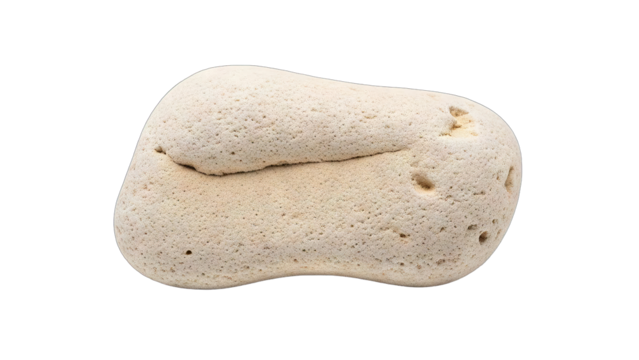 Small light-colored porous rock isolated on white background.