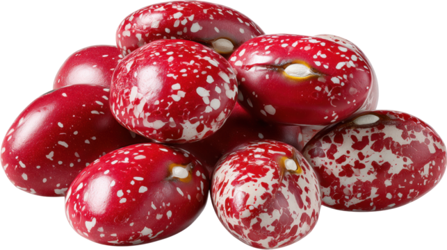 Colorful red bean isolated on transparent background with white spots and glossy texture