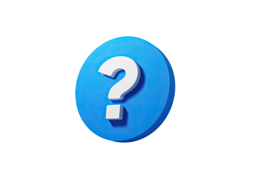 A bright, rounded, light-blue circle button with a prominent white question mark graphic