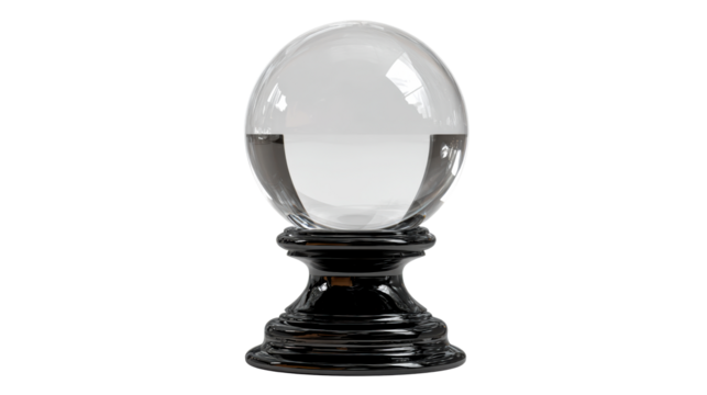Crystal Orb filled with liquid on a black ornate stand, cut out transparent