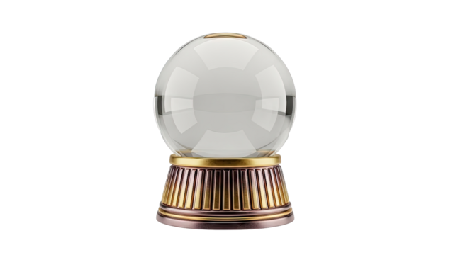 Crystal ball with golden base isolated PNG, magical fortune teller sphere on transparent background for predictions and mystic themes