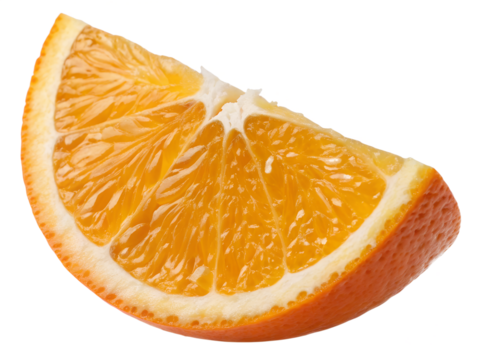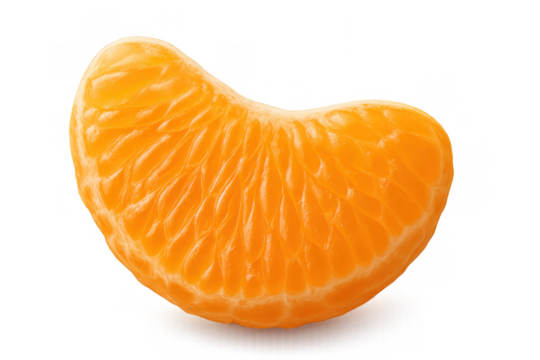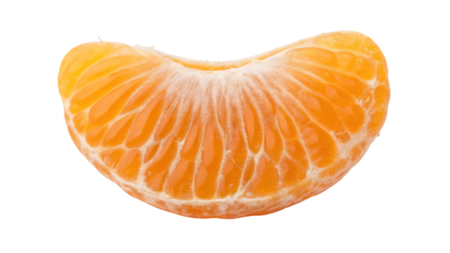 Close up of a single tangerine segment isolated on transparent background, showcasing its vibrant color and juicy texture