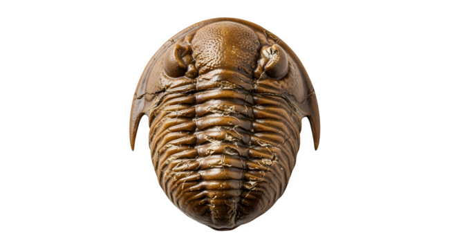 A detailed trilobite fossil isolated on transparent background, showcasing the intricate details of this ancient marine arthropod from prehistoric times