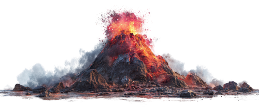 Lava volcano isolated on transparent or white background