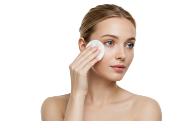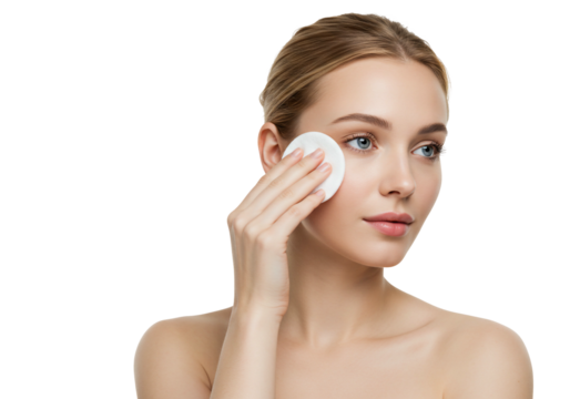 White round cotton pad on transparent background, essential for makeup removal, cosmetology, and daily skincare hygiene