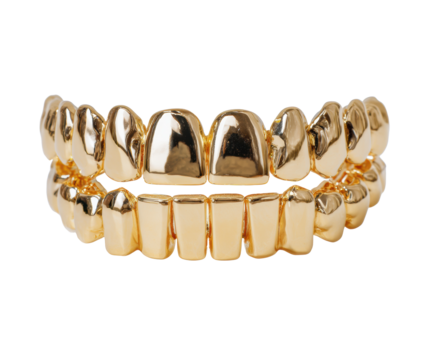 Trendy gold grillz for stylish fashion statements on a transparent background, cut out