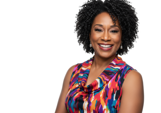 Radiant Confidence: A woman with beautiful, voluminous hair radiates joy, her arms crossed and her expression one of pure confidence.  A moment of self-assurance.
