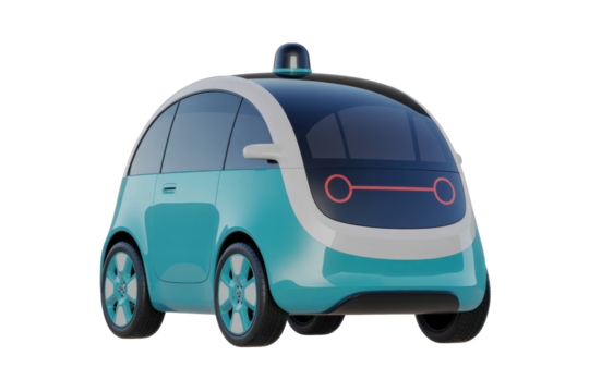 Modern autonomous electric shuttle PNG isolated on transparent background, self-driving vehicle for public transport and future mobility