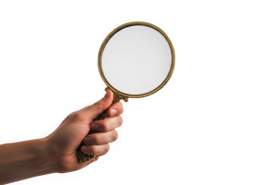 Pink tabletop mirror standing on a vanity for beauty and personal care routine with blank reflective surface