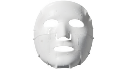 White facial sheet mask for skincare and beauty treatment isolated on transparent background