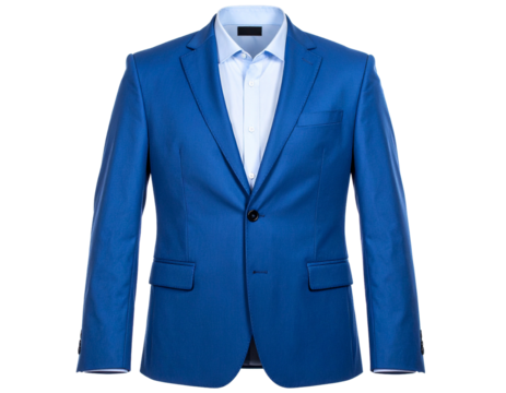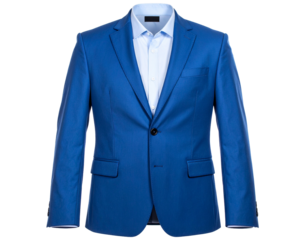 A folded men's blue blazer, isolated on a white background, ready for formal or semi-formal occasions.