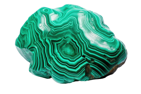 Polished turquoise gemstone displaying vibrant green hue, intricate black veining against transparent background, highlighting natural mineral beauty