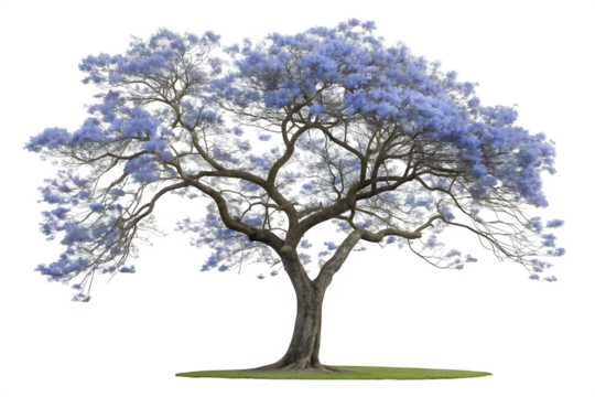 A stunning jacaranda tree with a full canopy of vibrant purple flowers, expertly isolated against a clean background, ready for design use. background removed