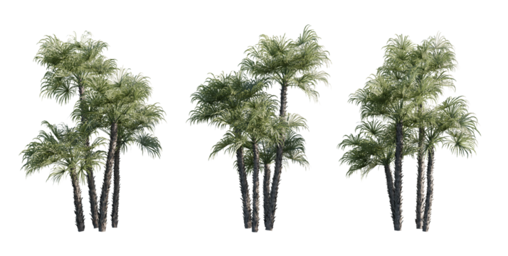 isolated cutout palm , silver saw palmetto, everglades palm, acoelorrhape wrightii in 3 different angle, best use for landscape design