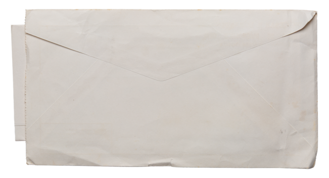 Tan envelope with a white card partially visible inside the opening of the envelope shown at an angle on transparent background