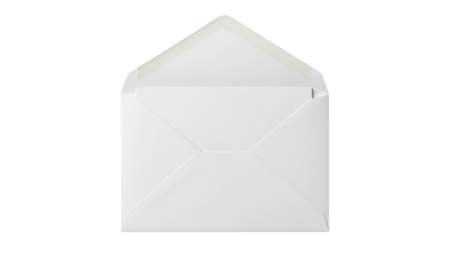 Open white envelope isolated PNG on transparent background, blank stationery for sending letters and invitations, mailing and correspondence