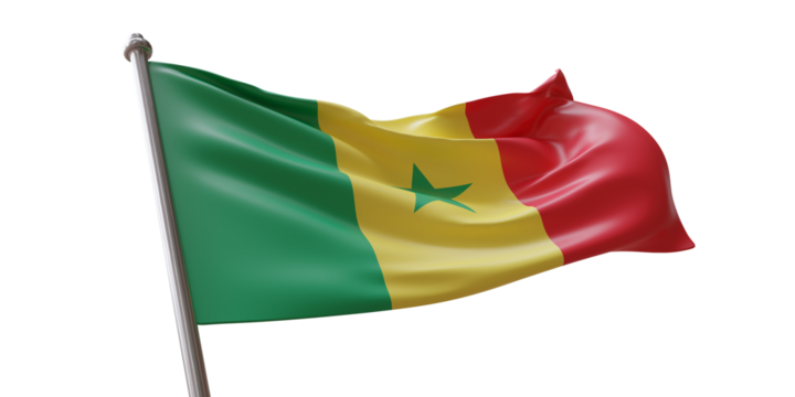 Senegal national flag waving on pole isolated on white background, symbol of Senegalese pride and independence