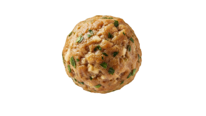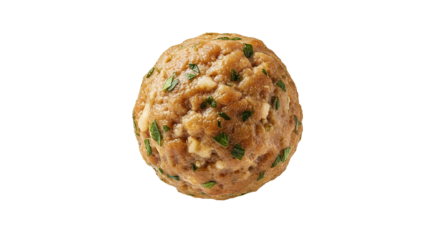 Savory Single Meatball Delights the Senses and Promises Culinary Satisfaction on Clean White Backdrop with Subtle Shadow