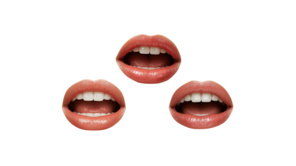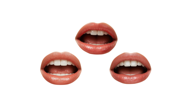 Glossy lips with gradient red and blue lipstick, vibrant color makeup detail, artistic beauty close-up, sensual fashion aesthetic isolated on transparent background