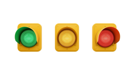 Isolated Detailed Rendered Three Traffic Light with Green Yellow and Red