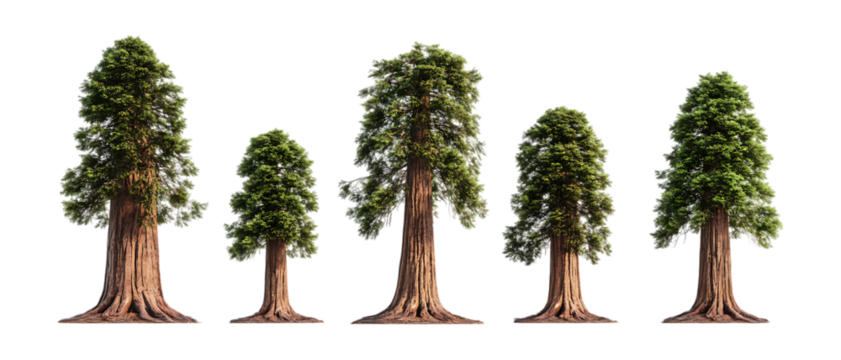 Giant Sequoia Trees: Comparison of Mature and Young Specimens isolated on transparent background