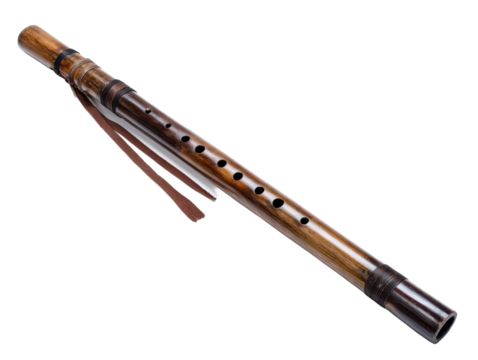 Traditional bamboo flute on a white background.