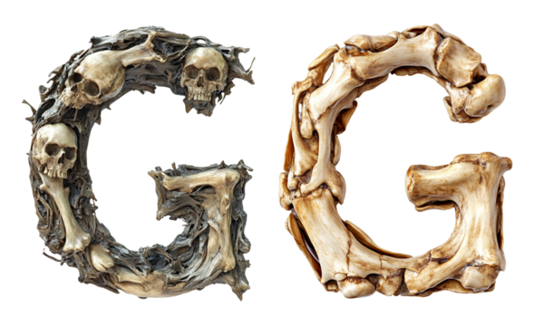 letter font "G" made of bones and skulls for halloween parties and horror festivals