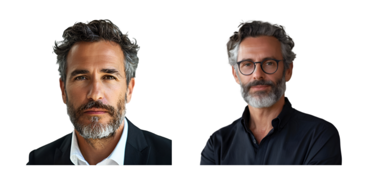 Modern Professional Portrait: A striking portrait of a sophisticated man and woman, dressed in formal attire, exuding confidence and poise in a professional setting.