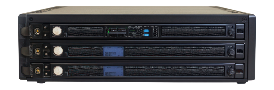 A futuristic data server tower with blinking lights, isolated on a empty plain background