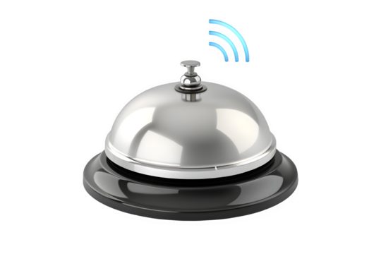 Brass reception bell isolated PNG on transparent background, vintage service call bell for hotel or restaurant