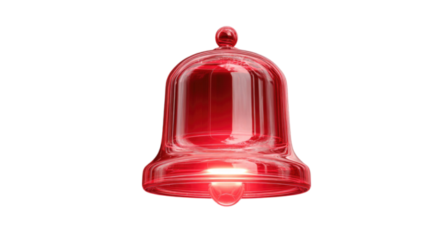 Shiny glowing red hotel service bell isolated on a white background, featuring a metallic chrome reflection for concierge desk assistance and customer support ring sound