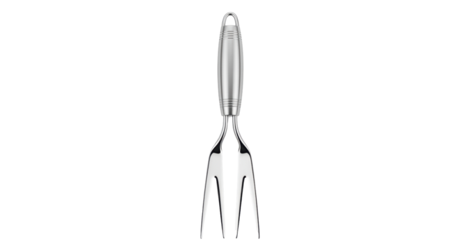 Isolated three-prong carving fork, a culinary tool for serving meats and poultry items