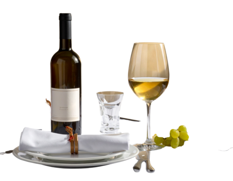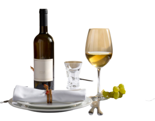 Wine serving set with bottle and glass