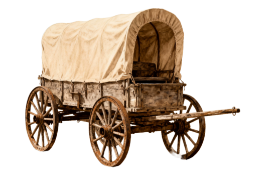 Isolated Vintage Wooden Covered Wagon with Canvas Top