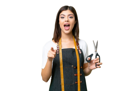 Transparent portrait asian female fashion designer holding scissors