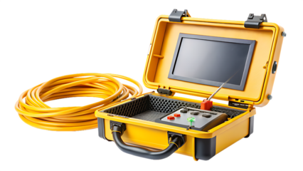 Close up of a new orange plastic pipe fitting with a black rubber seal for plumbing applications on transparent background