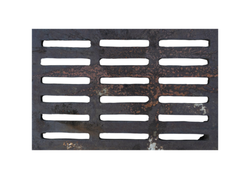Old rusty metal grill drain isolated on transparent background