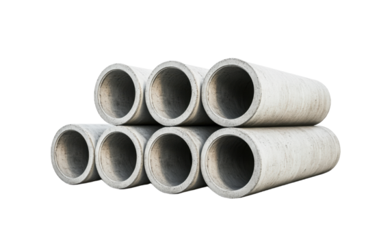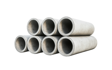 Three concrete pipes isolated on transparent background